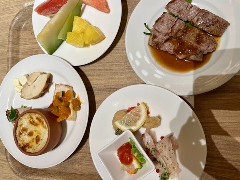 旅行中の食事は…いつものように食べすぎました。特にぽちゃこ… わんこバイキングの所・・・
